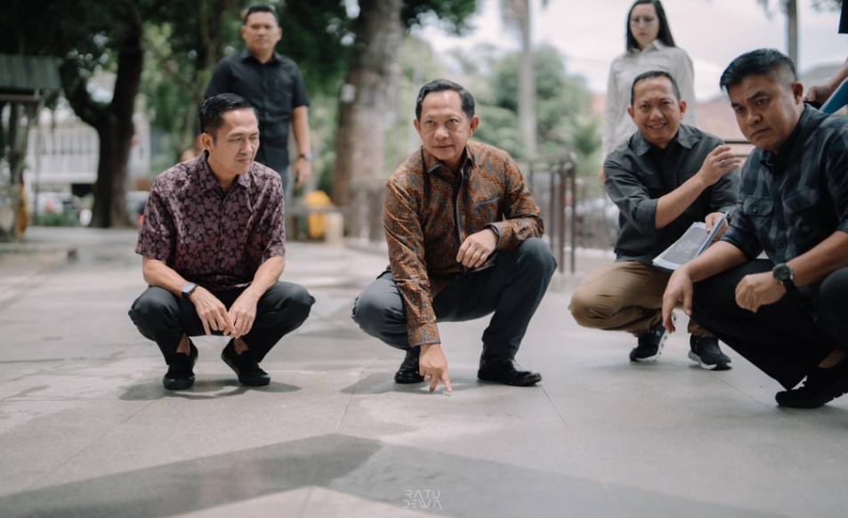 Tito Karnavian yang terlihat mengenakan batik lengan panjang serasi dengan bawahan berwarna gelap tak segan segan duduk berjongkok menggosok lantai keramik yang selama ini dianggap berisiko bagi warga yang beraktivitas olahraga di kawasan tersebut.