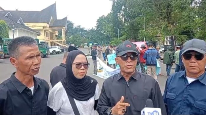 Sumsel.Sahabatrakyat.com, Lahat – Sejumlah massa yang tergabung dalam Gerakan Rakyat Peduli Keadilan (GRPK RI) dan perwakilan eks karyawan menggelar aksi unjuk rasa di halaman Pemerintah Kabupaten Lahat, Kamis (23/4/2026). Aksi tersebut dilakukan sebagai bentuk protes terhadap berbagai dugaan permasalahan yang melibatkan PT LPPBJ.
