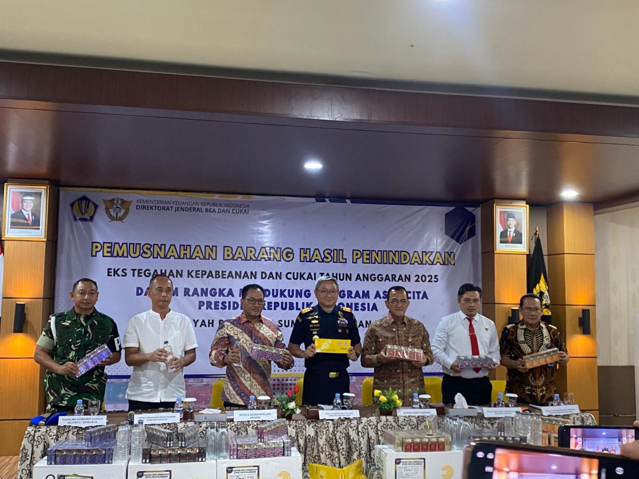 Barang yang dimusnahkan didominasi hasil penindakan di bidang cukai, yakni 10.567.628 batang rokok ilegal dan 299,45 liter minuman mengandung etil alkohol (MMEA) ilegal. Agus menegaskan bahwa penindakan terhadap barang kena cukai ilegal dilakukan secara konsisten sebagai langkah menekan peredaran barang ilegal di tengah masyarakat.