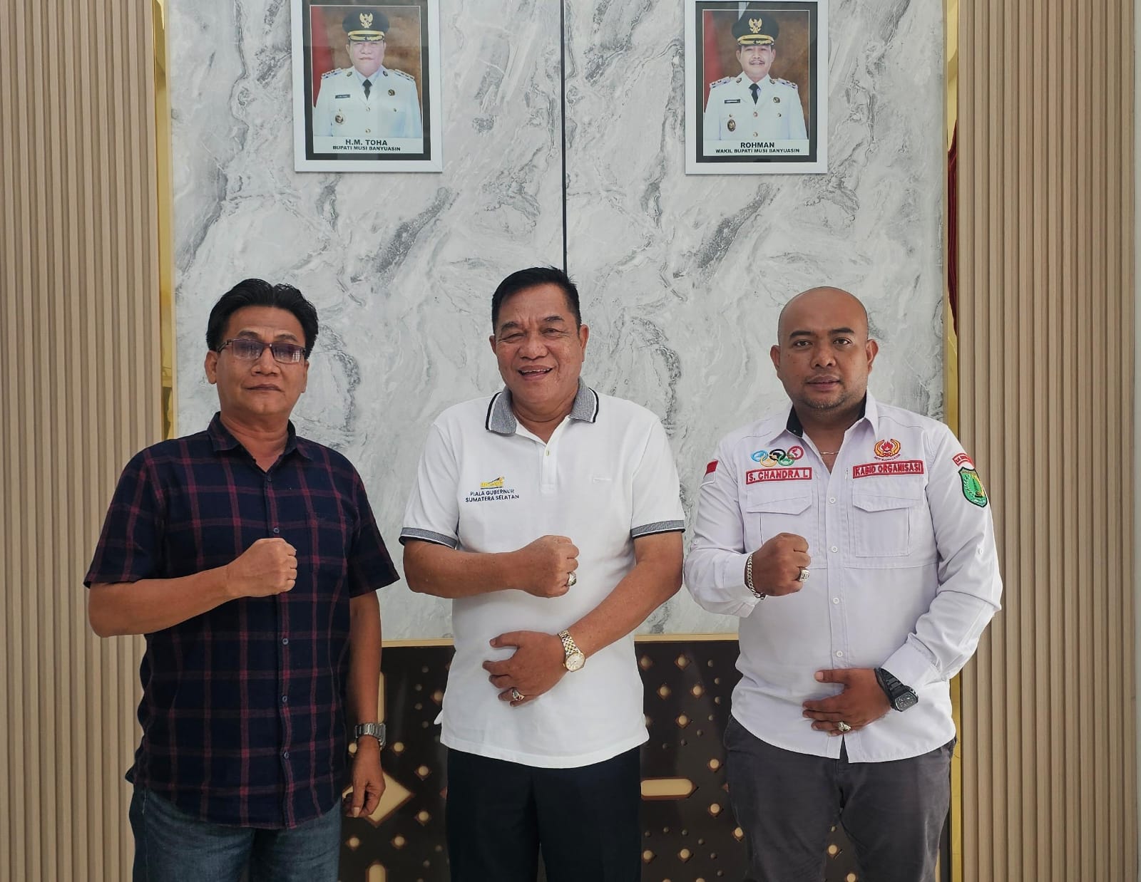 Sumsel.SahabatRakyat.com. SEKAYU_Bursa pencalonan Ketua Komite Olahraga Nasional Indonesia (KONI) Kabupaten Musi Banyuasin (Muba) kian menghangat. Saputra Candra Lesmana, salah satu kandidat kuat, menunjukkan keseriusannya dengan melakukan kunjungan silaturahmi langsung kepada Bupati Muba, H. M. Toha, guna memaparkan visi besar kemajuan olahraga di Bumi Serasan Sekate.
