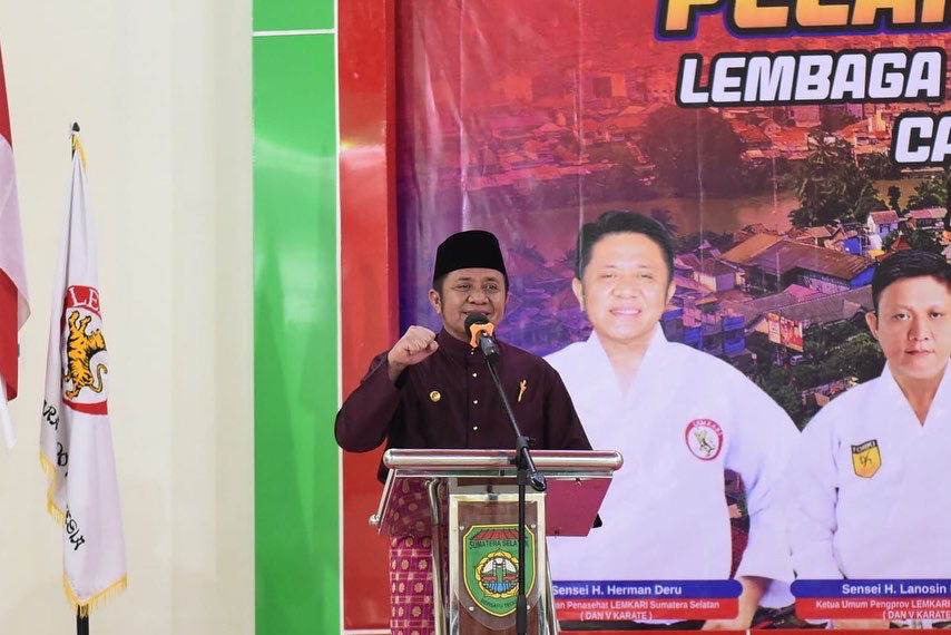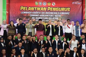 OKU, sahabatrakyat.com – Disela kunjungan kerjanya di Kabupaten OKU, Gubernur Sumsel H Herman Deru berkesempatan untuk menghadiri pelantikan pengurus cabang Lembaga Karate-Do Indonesia (Lemkari) Kabupaten OKU.