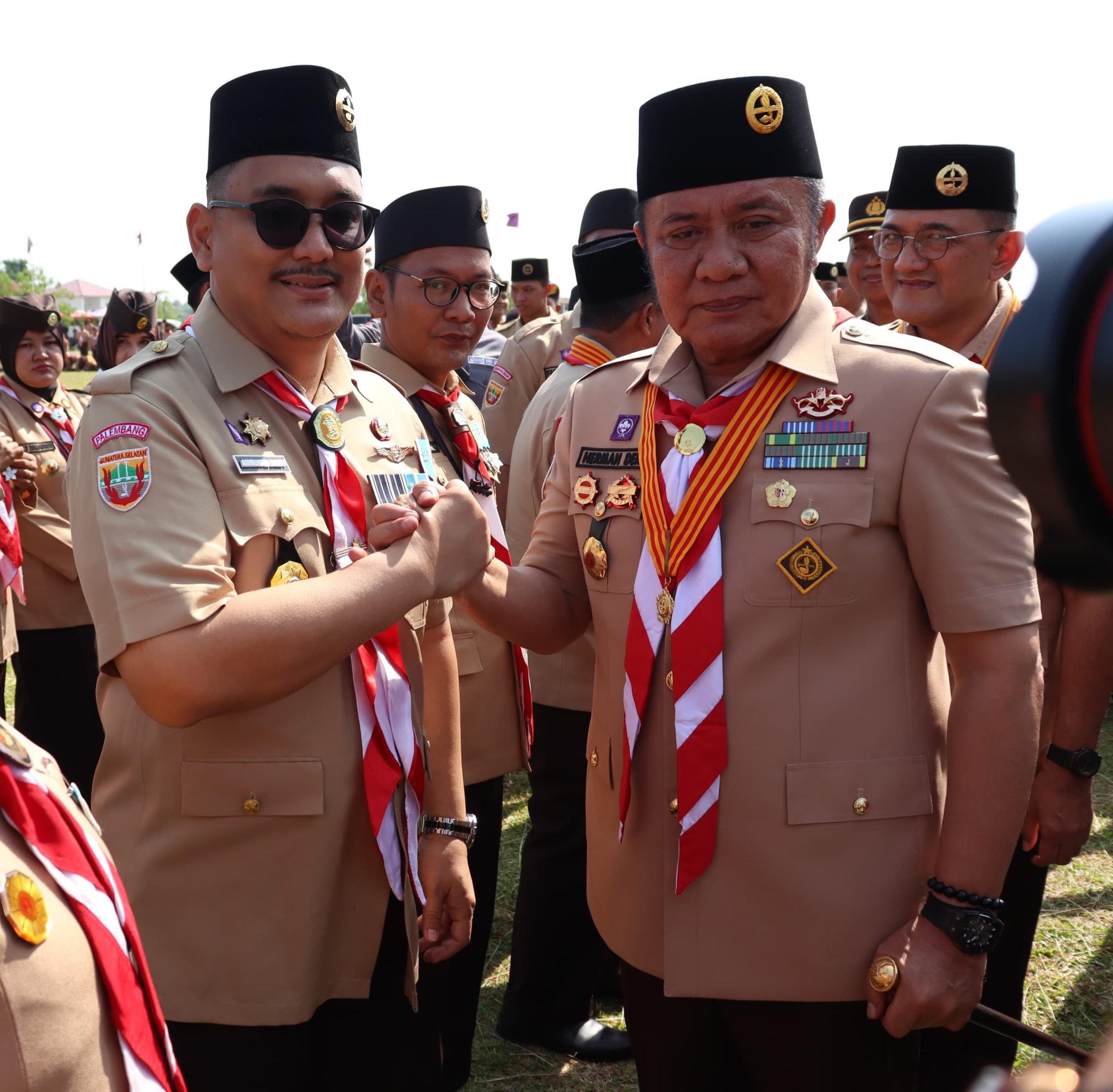 Sumsel.Sahabatrakyat.com, Palembang – Camat Kemuning, Dr. Amiruddin Sandy S.STP.,M.Si, menerima Tanda Penghargaan Pramuka yang disematkan langsung oleh Gubernur Sumatera Selatan, H. Herman Deru, di Bumi Perkemahan Pramuka Gandus, Kota Palembang, Kamis, 28 Agustus 2025.