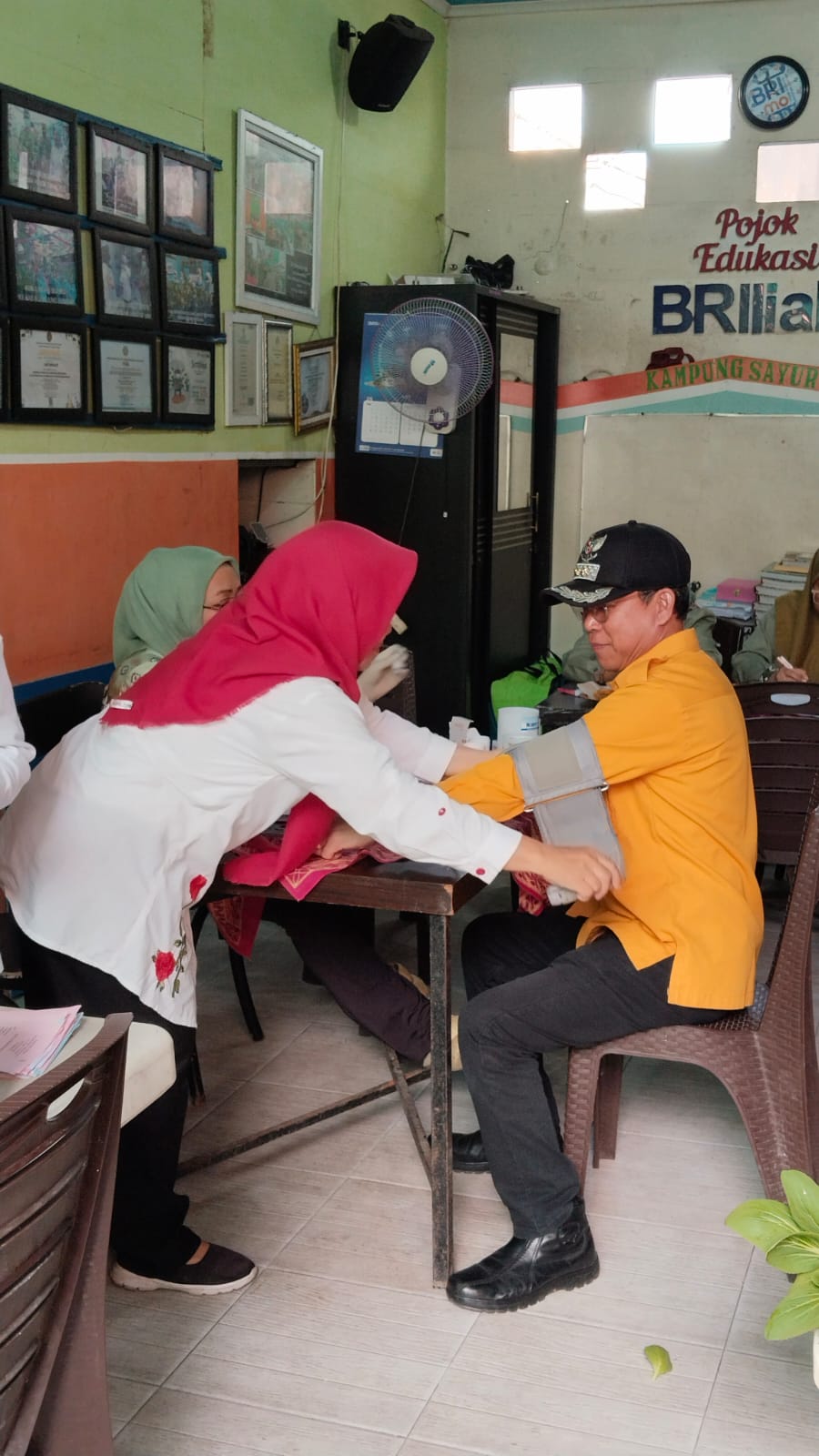 Selain pemeriksaan rutin, kegiatan ini juga menjadi ajang edukasi tentang pentingnya gizi seimbang, khususnya konsumsi sayur mayur sebagai sumber vitamin dan serat. Suasana penuh kebersamaan terlihat ketika para ibu tersenyum menerima paket sayur, tanda kepedulian dan gotong royong masih hidup di tengah masyarakat.