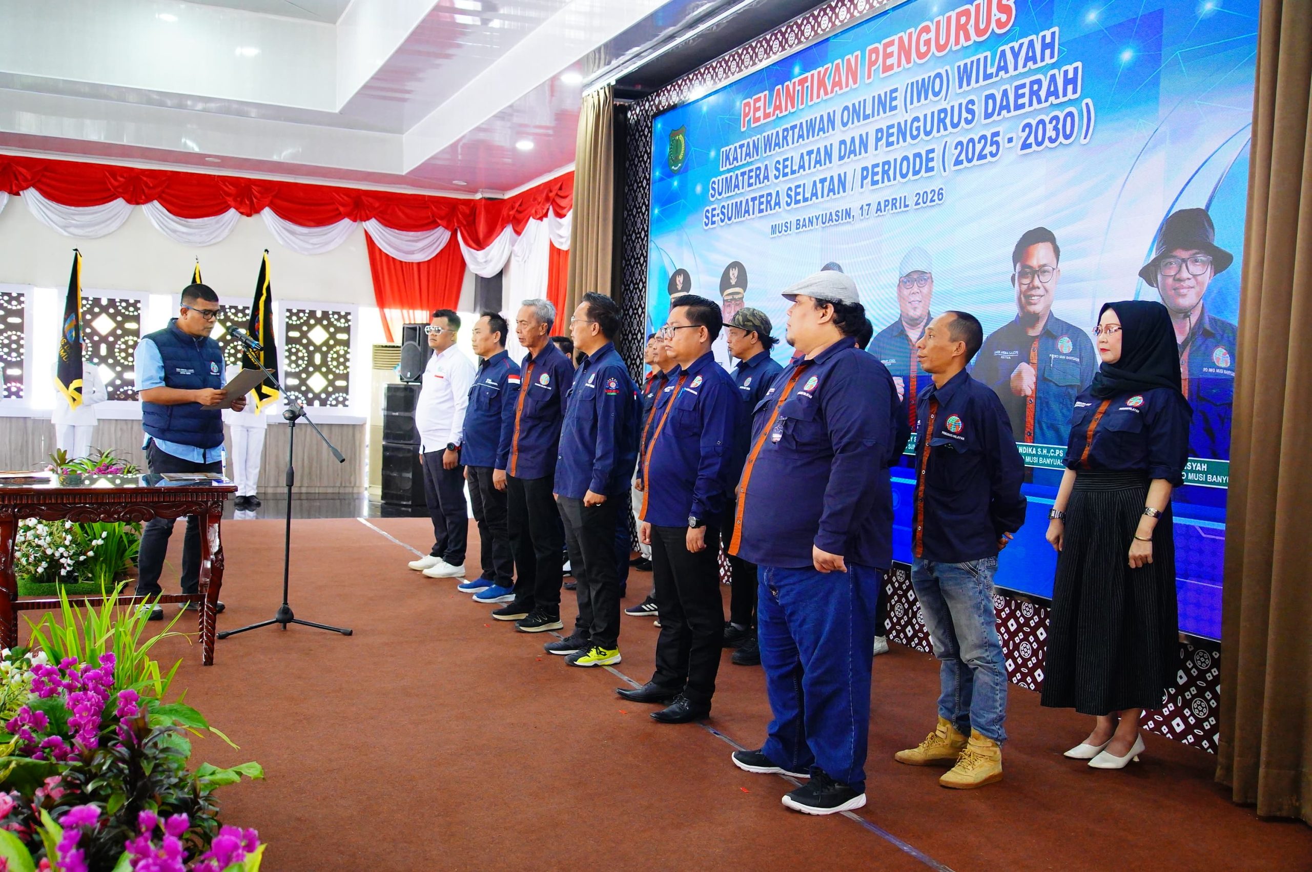 Sumsel.SahabatRakyat.com.Muba_Pengurus Daerah Ikatan Wartawan Online (PD IWO) Musi Banyuasin resmi dilantik dalam sebuah acara yang berlangsung khidmat dan penuh semangat kebersamaan, Jumat (17/4/2026).