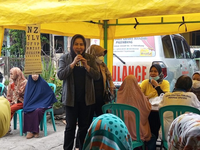 Sumsel. SahabatRakyat.com,-!Sri M Tuti Fauzi, SE.,SKM., M. Kes, Calon Legislatif (Caleg) DPRD provinsi Sumsel dapil 2 nomor urut 4 dari partai Golkar melalui RS. Graha Mandiri mengadakan bakti sosial berupa Pemerikasaan Kesehatan dan Pengobatan Gratis untuk warga jalan Indragiri II Rt.49 dan sekitar Kelurahan Sialang Kecamatan Sako, Jum’at (01/11/2023).