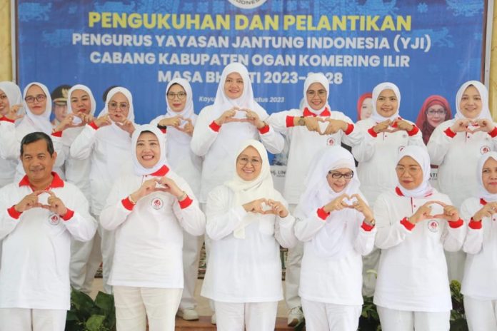 Sumsel. Oki. SahabatRakyat.com.- Ketua Yayasan Jantung Indonesia (YJI) Cabang Provinsi Sumsel, Hj Fauziah Mawardi Yahya mengukuhkan Pengurus YJI Cabang Kabupaten Ogan Komering Ilir (OKI) Masa Bakti 2023-2028 bertempat di Pendopo Bende Seguguk Kabupaten OKi, Selasa (1/8).